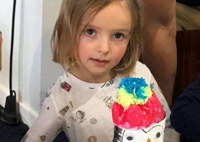 Un chocolat chaud (lait animal ou végétal) ou un sirop est ensuite servi aux enfants.