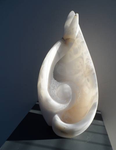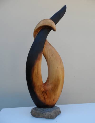 « La terre, la pierre, le bois… Ces matières brutes et nobles guident le plus souvent mon travail. Mes yeux, mes mains se mettent au diapason des matériaux, le dialogue s’installe et l’œuvre apparaît, souvent sans idée préconçue. La première impulsion naît d’une aspérité, d’un veinage, d’une ligne présente dans la matière que je décide de suivre. Le dialogue s’installe avant même le premier coup d’outil, et durera jusqu’à ce que la pièce soit exposée. Là, ciselée par la lumière, soumise aux regards, face au public, un autre dialogue viendra peut-être relayer le précédent.